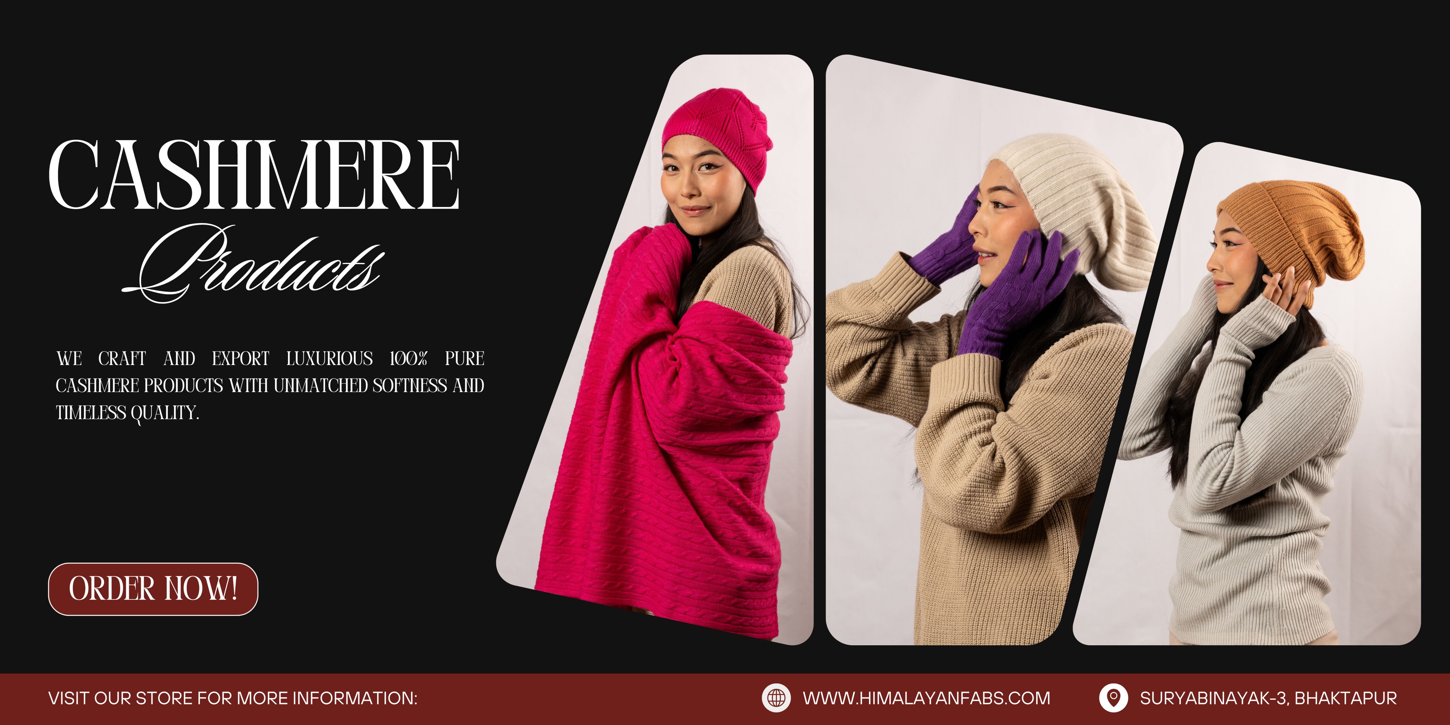 Himalayan Fabs International is one of the leading manufacturer and exporter of fine cashmere products in Nepal. The Cashmere Company is registered with the government of Nepal 2010. We are working 24 people together. Most of them are women.Our products are totally hand made by local women at our cashmere company in Kathmandu Nepal.All the products are certified/ lab tested .we export wide range of finest, luxury Cashmere and Pashmina item from Nepal to abroad market, like USA, Australia and Europe. 100% the finest Nepali pashmina garments and Cashmere fashionable wear for women such as cashmere Shawls, cashmere fine scarves, cashmere Poncho, Cashmere cable poncho, cashmere Wraps, Cashmere felted wrap, cashmere dip dye wrap, cashmere sweater, cashmere jumper, cashmere cardigan, pashmina short and long cashmere robe .Cashmere Products for man like cashmere sweater, cashmere chunky jumper for winter, Cashmere jumper for summer, Cashmere cable sweater in unlimited colours.
